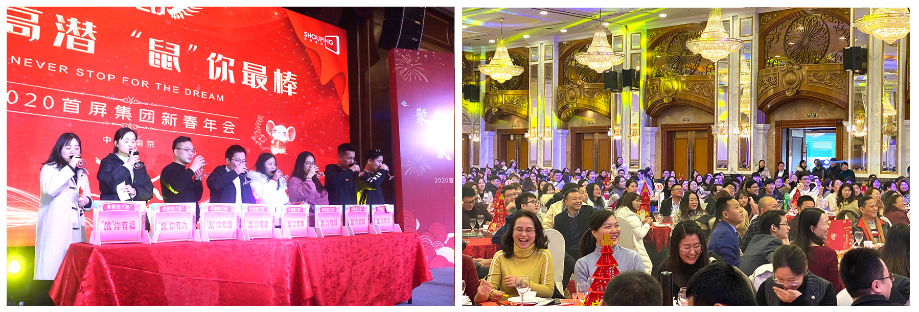 2020年1月19日,“聚焦高潛 鼠你最棒”——2020首屏集團新春年會在維景國際大酒店圓滿落幕!首屏集團南京、南通地區(qū)的近700名同學相聚一堂,共話團圓、喜迎新春。熱鬧喜慶的會場,精彩紛呈的表演、歡樂趣味的游戲、動人心魄的抽獎...讓年會格外熱鬧、驚艷?,F(xiàn)場的每個角落都充斥著新春的喜悅,每個人臉上都洋溢著快樂的笑容,每個瞬間都成為大家心中美好的回憶。